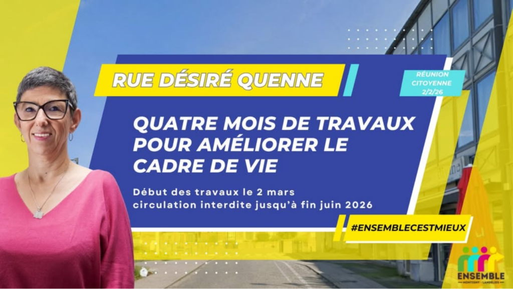 - Travaux de la rue Désiré Quenne : Retour sur la réunion citoyenneLes travaux de réaménagement de la rue Désiré Quenne débuteront le 2 mars 2026 pour une durée estimée jusqu’à fin… Lire la suite : Travaux de la rue Désiré Quenne : Retour sur la réunion citoyenne